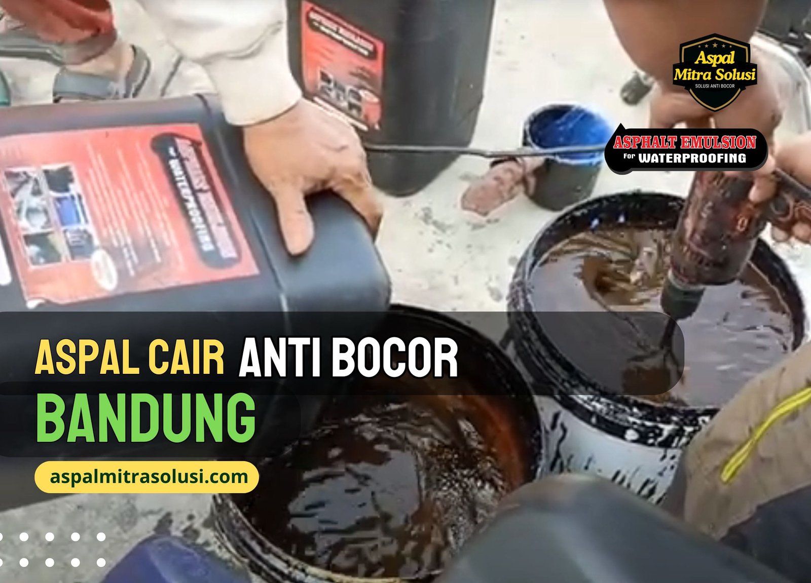 Dan kini Aspal Mitra Solusi hadir sebagai distributor yang menjual aspal cair di Bandung dengan merk Asphalt Emulsion yang siap melayani satuan atau skala proyek Jasa Waterproofing, sangat cocok untuk dak beton, genteng, dinding dan media lainnya.